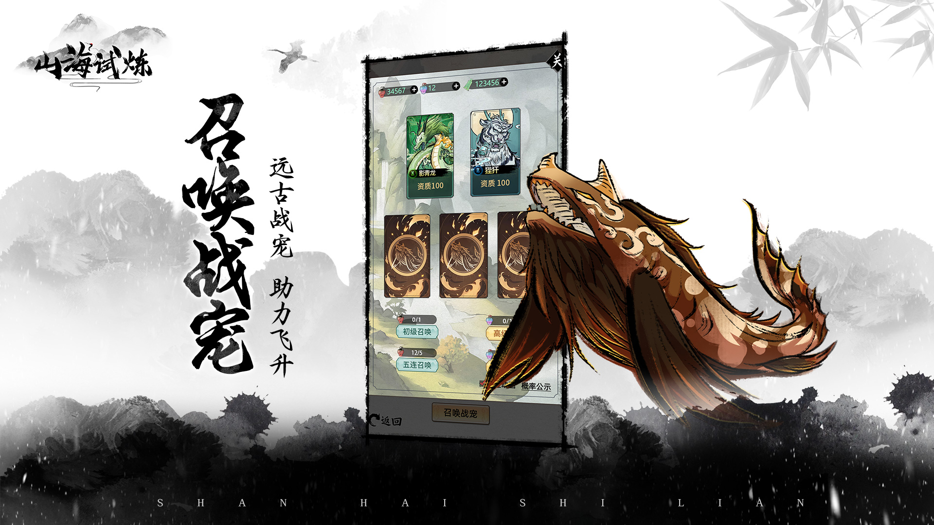 《山海试炼》是一款以“挂机”和“收菜”为核心玩法的2D国风山海经